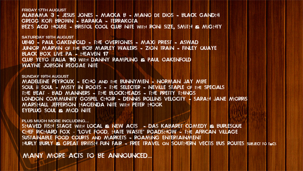 Tickets are available, still promotionally priced at £99 for adult weekenders, from www.wowfest.co.uk. Follow us on Twitter: #WOWfestIOW and Facebook: WOWfest. To receive WOWfest Newsletters, send your email address to enquiries@wowfest.co.uk.